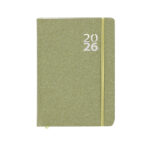 Agenda de tamaño A5 en Cartón Reciclado. Con cubiertas rígidas y elástico de cierre a juego. Incluye caja kraft de presentación. Con distintitivo ECO.Diseño página día, zona de anotaciones y marcapáginas de tela. En 2 idiomas: castellano e inglés. El Cartón Reciclado proviene del reaprovechamiento de excedente de fabricaciones y reciclaje de papel en el final de su vida útil, convirtiéndose en un lienzo ecológico y sostenible.