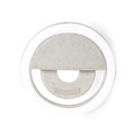 Anillo de luz LED para smartphone, fabricado en resistente caña de trigo. Ajustable a cualquier smartphone, con 36 LEDs y 3 niveles de intensidad de luz. Batería de 80 mAh y recargable por USB (cable Micro USB incluido). Presentado en atractiva caja de diseño, con manual de instrucciones disponible en español e inglés.La caña de trigo fomenta la utilización de materias primas naturales, reduciendo así las emisiones contaminantes.