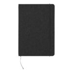 Bloc de notas con tapas rígidas fabricadas en RPET. Interior con 80 hojas lisas. Incluye marcapáginas, con logotipo RPET en la contraportada. Disponible en elegantes colores y presentado individualmente en bolsa reciclada. El material RPET se elabora a partir de plástico reciclado, para así fomentar la reutilización de residuos plásticos y ayudar a la sostenibilidad del planeta.