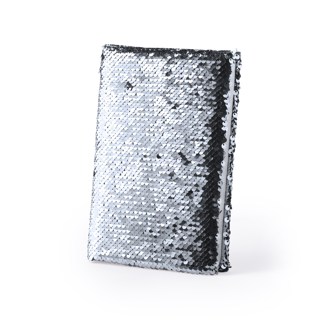 Bloc de notas interactivo de lentejuelas en llamativos colores metalizados. Al deslizar el dedo por las lentejuelas la superficie cambia de color. Incluye 80 hojas blancas lisas.