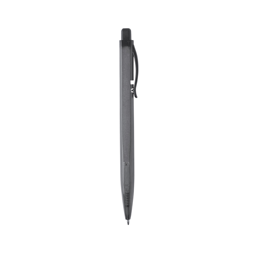 Original bolígrafo con cuerpo rectangular de acabado translúcido monocolor. Con mecanismo pulsador, original clip y disponible en extensa gama de colores. Tinta azul.