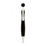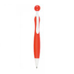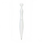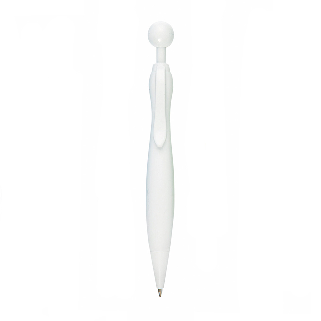 Bolígrafo de mecanismo pulsador de atrevido diseño bicolor con accesorios en color blanco sólido y cuerpo curvado de suave acabado en llamativos colores sólidos. Con original clip pulsador en forma de bola a juego. De cartucho jumbo y tinta azul.