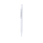 Bolígrafo puntero fabricado en aluminio. De mecanismo pulsador con puntero y clip metálico a juego con el cuerpo. Cuerpo terminación en goma, especialmente diseñado para marcaje en láser. De cartucho jumbo y en tinta azul.