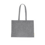 Bolsa de línea nature, fabricada en algodón reciclado de alto gramaje (240g/m2). De acabado cosido y con asas largas reforzadas (70 x 2,5 cm). Con fuelle y disponible en colores natural y negro, con distintivo algodón reciclado en etiqueta exterior. Resistencia hasta 10 kg de peso.Certificación GRS (Global Recycled Standard / Estándar de Reciclaje Global), que garantiza el origen reciclado del material usado para fabricar el producto