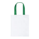 Bolsa de canvas de 230g/m2. En color blanco, con resistente acabado cosido y asas reforzadas en diferentes colores de 60cm de largo.