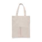 Bolsa fabricada en algodón 100%, de acabado natural y en gramaje extra de 310g/m2. Con dos bolsillos exteriores, de acabado cosido y con fuelle. Asas medianas extra anchas y reforzadas (58 x 3,5 cm). Resistencia hasta 10 kg de peso.