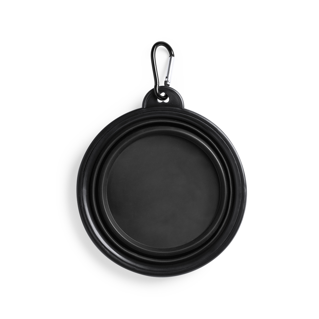 Bowl plegable para mascotas en resistente material TPR. Diseñado para sólidos y líquidos, con 450ml de capacidad y mosquetón de transporte metálico a juego. Disponible en variada gama de colores.