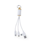 Cable cargador fabricado en combinación de bambú y material reciclado a partir de cartones de leche. Incluye conexión dual USB/Tipo C + conexiones Micro USB, Tipo C y Lightning. Con original anilla de transporte y logotipo cartones de leche reciclados. Presentado en caja individual de diseño kraft, con papel protector incluido. 5V DC 2.4A.Los cartones de leche se componen en su mayor parte de cartón y aluminio. Durante su proceso de reciclado, se separan los distintos materiales del envase para su reutilización y nuevo uso, contribuyendo así a recorrer el camino infinito de la economía circular. Este material se caracteriza por su alto grado de reciclabilidad, así como por su ligereza y resistencia.Materiales como el bambú fomentan la utilización de materias primas naturales, reduciendo las emisiones contaminantes. Proviene de una planta de gran resistencia y versatilidad, con crecimiento y regeneración rápidos, siendo una excelente alternativa al uso de madera tradicional.Fabricado conforme a estándares RoHS, con sistema de bloqueo para evitar cortocircuitos.