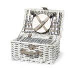 Lleva el estilo a tus picnics con este set tan cool. Cesta nevera para picnic con acabado color blanco, con asas y cintas de ajuste en color gris. Ideal para dos personas gracias a sus dos completos servicios y multitud de accesorios. Incluye original nevera con interior isotermo de aluminio.