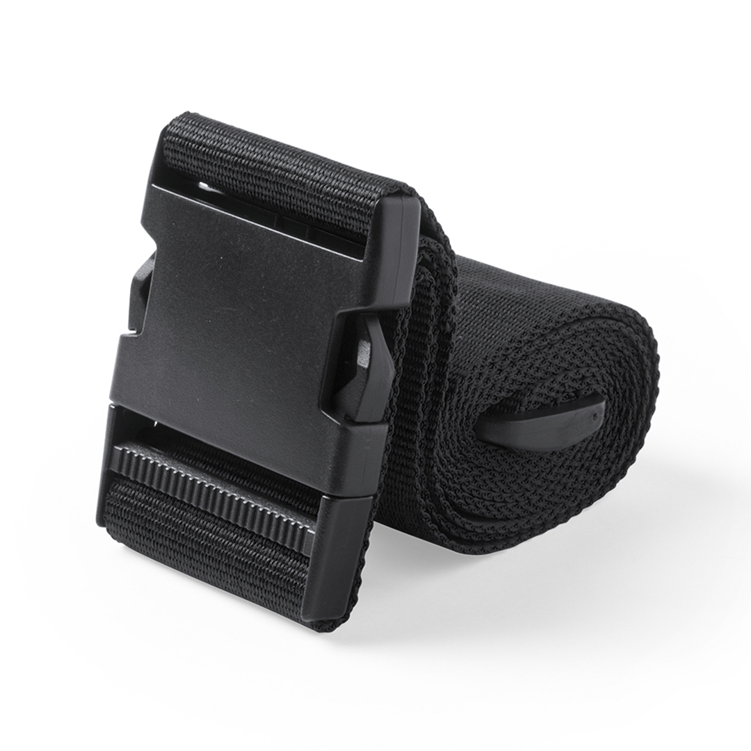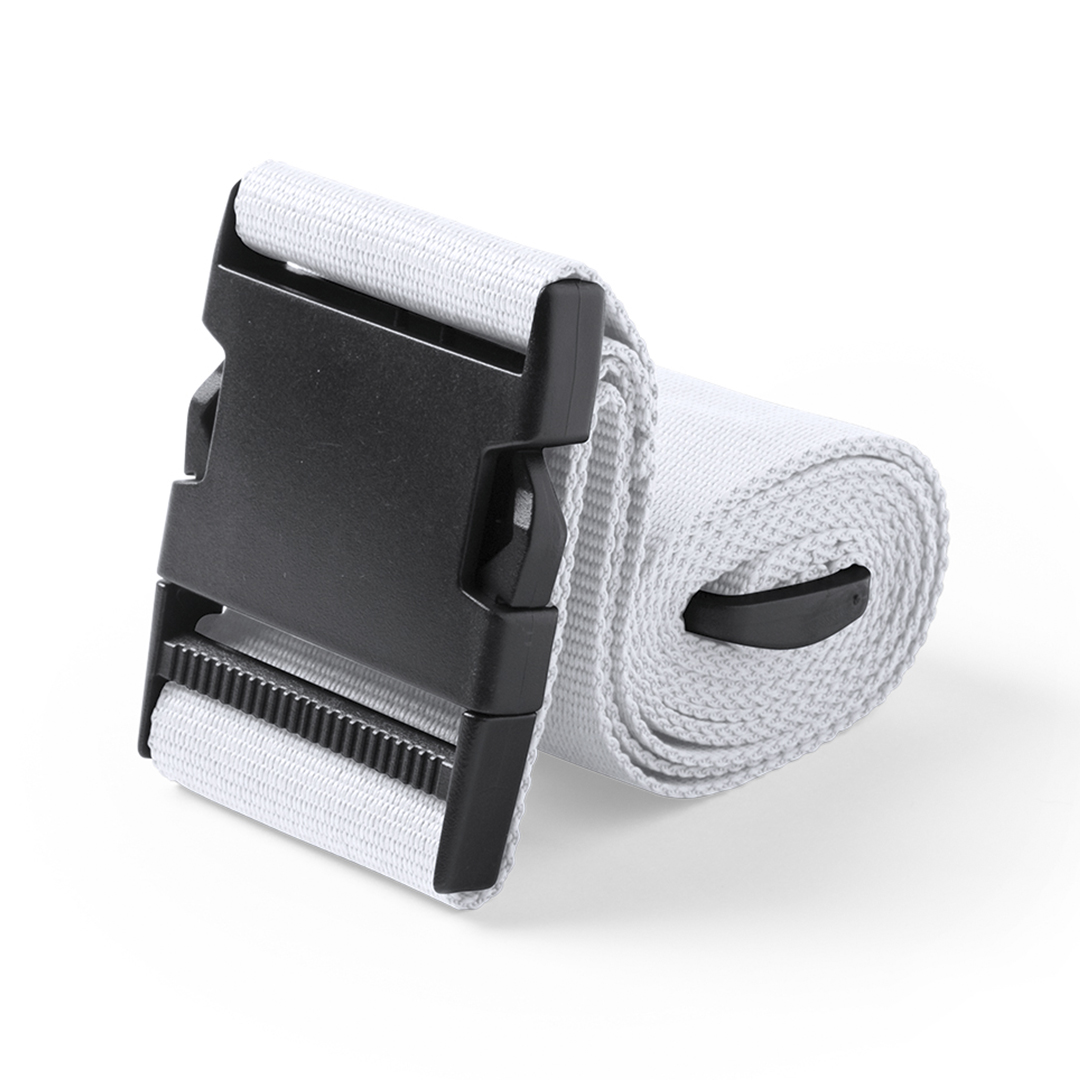 Cinta para maletas de 180cm en resistente poliéster de acabado en vivos colores. Con cierre de clic y accesorio de ajuste.