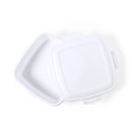 Fiambrera de 1L de capacidad, hecha en PP de color blanco. De fabricación europea y con certificación Food Grade, garantizando la seguridad cuando los alimentos entran en contacto con el material usado para fabricar el producto. Formato cuadrado, con cierre de seguridad en todos sus lados.