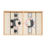 Divertido juego de mesa fabricado en madera e ideal para los más competitivos. El juego consiste en lanzar las fichas desde cada campo al capo contrario usando el elástico. Gana el que más fichas cuele por la ranura del oponente. Tablero con 5 fichas blancas y 5 negras, presentado en una caja individual de diseño kraft.