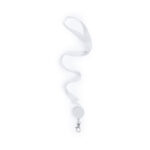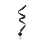 Práctico lanyard en poliéster con accesorio extensible. Accesorio de seguridad en el cuello y accesorio retráctil extensible con clip de ajuste en un lado, dejando el otro lado libre para el logotipado. Mosquetón metálico. Conjunto disponible en colores blanco y negro.