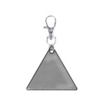 Llavero de diseño triangular en PVC reflectante de alta visibilidad y con cierre mosquetón.