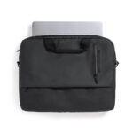 Maletín de Antonio Miró de calidad premium en resistente poliéster 600D. De sobrio diseño y con compartimento acolchado para portátil de hasta 15 pulgadas. Con cómoda asa de transporte reforzada, cierres de cremallera con tiradores metálicos y bolsillo frontal. Logotipo de la marca en frontal.