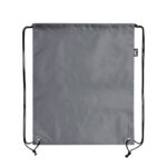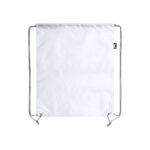 Mochila de cuerdas en suave poliéster RPET. Con cuerdas autocierre, esquinas reforzadas y resistentes argollas metálicas. Distintivo RPET en etiqueta lateral y disponible en variada gama de colores (color blanco especialmente fabricado para impresión en sublimación).Elaborado a partir de plástico reciclado, para así fomentar la reutilización de residuos plásticos y ayudar a la sostenibilidad del planeta.