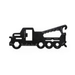 Original y práctica multiherramienta en acero inox con forma de camión. Con 18 funciones, entre otras: destornillador de punta plana y philips, llave para tuercas hexagonales en varios tamaños, regla, abridor de cajas y abrebotellas. Presentado en bolsa de papel reciclada.