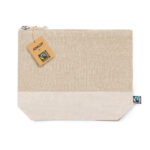 Neceser de línea nature, fabricado en algodón 100%. Con certificación Fairtrade (Comercio Justo), un sistema comercial solidario y alternativo al convencional que persigue el desarrollo de los pueblos y la lucha contra la pobreza. Compartimento principal con cierre de cremallera y tirador a juego, con base en tono natural y parte frontal superior disponible en tonos negro y natural. Incluida etiqueta Fairtrade y hangtag distintivo en cartón reciclado.
