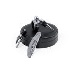 Set de vinos de elegante diseño circular acabado en polipiel, con accesorios de acero inox. Incluye sacacorchos de 2 tiempos con cortacápsulas y abridor; tapón, dosificador y recogegotas. Presentado en estuche individual de polipiel con interior en suave espuma troquelada de color negro.