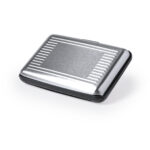 Tarjetero con tecnología de seguridad RFID (Identificación por Radio Frecuencia) que mantiene seguros tus dispositivos de transmisión de identidad. De resistente diseño en aluminio, con 6 compartimentos distribuidos en acordeón y zona lisa en el exterior diseñada para marcaje en láser.