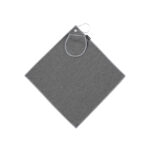 Toalla de golf fabricada en RPET con doble textura: suave acabado bitono por una cara y textura de hilo uniforme por la otra, para adaptarse a diferentes necesidades de limpieza. Su diseño incluye bolsillo para pelotas de golf a juego. Con argolla reforzada y mosquetón de acople. Incluye distintivo RPET en etiqueta.El material RPET se elabora a partir de plástico reciclado, para así fomentar la reutilización de residuos plásticos y ayudar a la sostenibilidad del planeta.